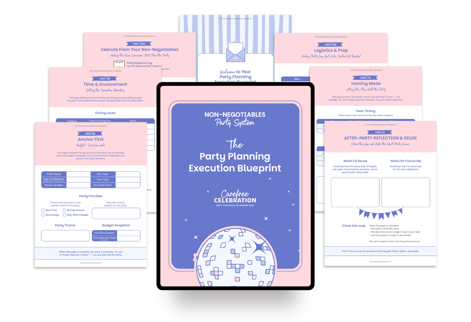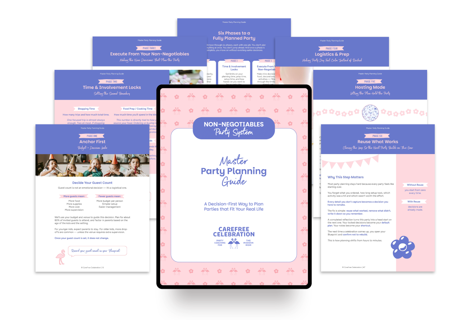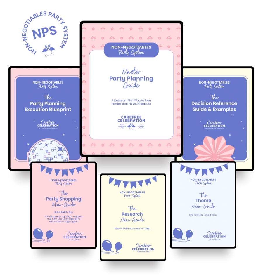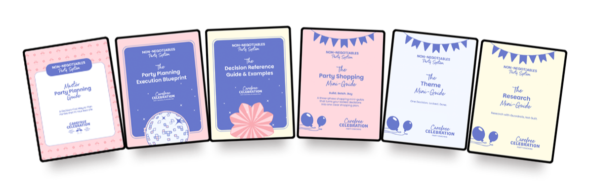 Disclaimer: The Non-Negotiables Party Planning System is a digital educational product designed to teach a decision-based approach to party planning. Carefree Celebration and Christy Shukla make no guarantees of specific results. Individual outcomes will vary based on personal circumstances, effort, and implementation. This product does not constitute professional legal, financial, or other licensed advice. All sales are final. By purchasing this product, you acknowledge that you have read and agree to these terms.